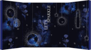 Wie ein Portal lässt sich der, in einer edlen dunkelblauen Farbwelt gehaltene, Kalender aufklappen und dekorativ in Szene setzen. Festlich glitzern silberne Akzente auf einem dezenten Winterwald. Filigrane Ornamente in Form von Kugeln, Sternen und Ampullen verströmen einen Hauch von Weihnachten. LET’S SPARKLE!